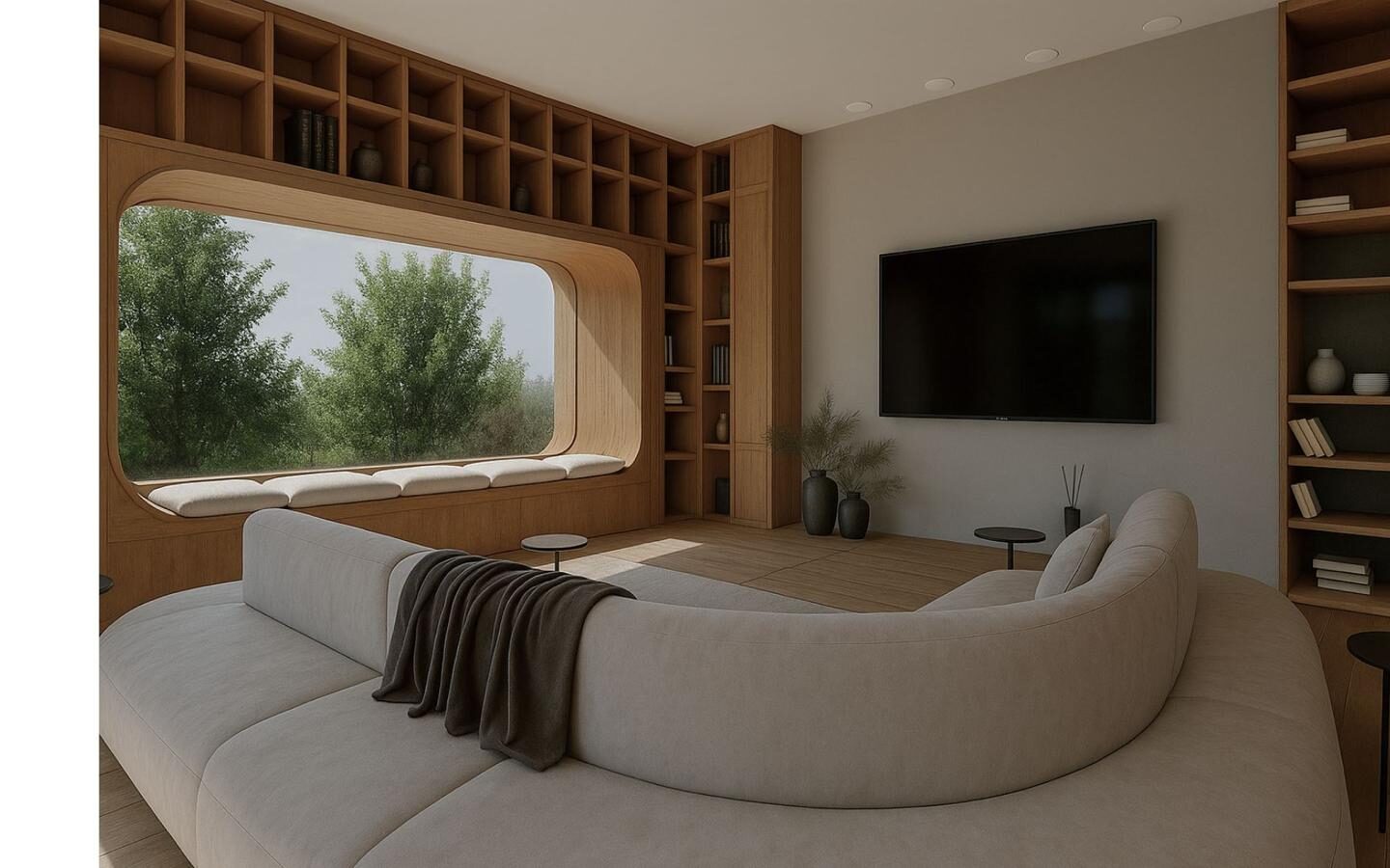 Głównym wyzwaniem projektowym w tym wnętrzu była jego imponująca kubatura. Klientowi zależało na zachowaniu poczucia przestronności i “oddechu”, jaki daje wysoki sufit, a jednocześnie na uniknięciu efektu chłodnej hali. Odpowiedzią stała się gra kontrastów: zestawienie otwartej, rzeźbiarskiej strefy dziennej z intymnymi, wyciszonymi zaułkami, które dają poczucie bezpiecznego schronienia.
